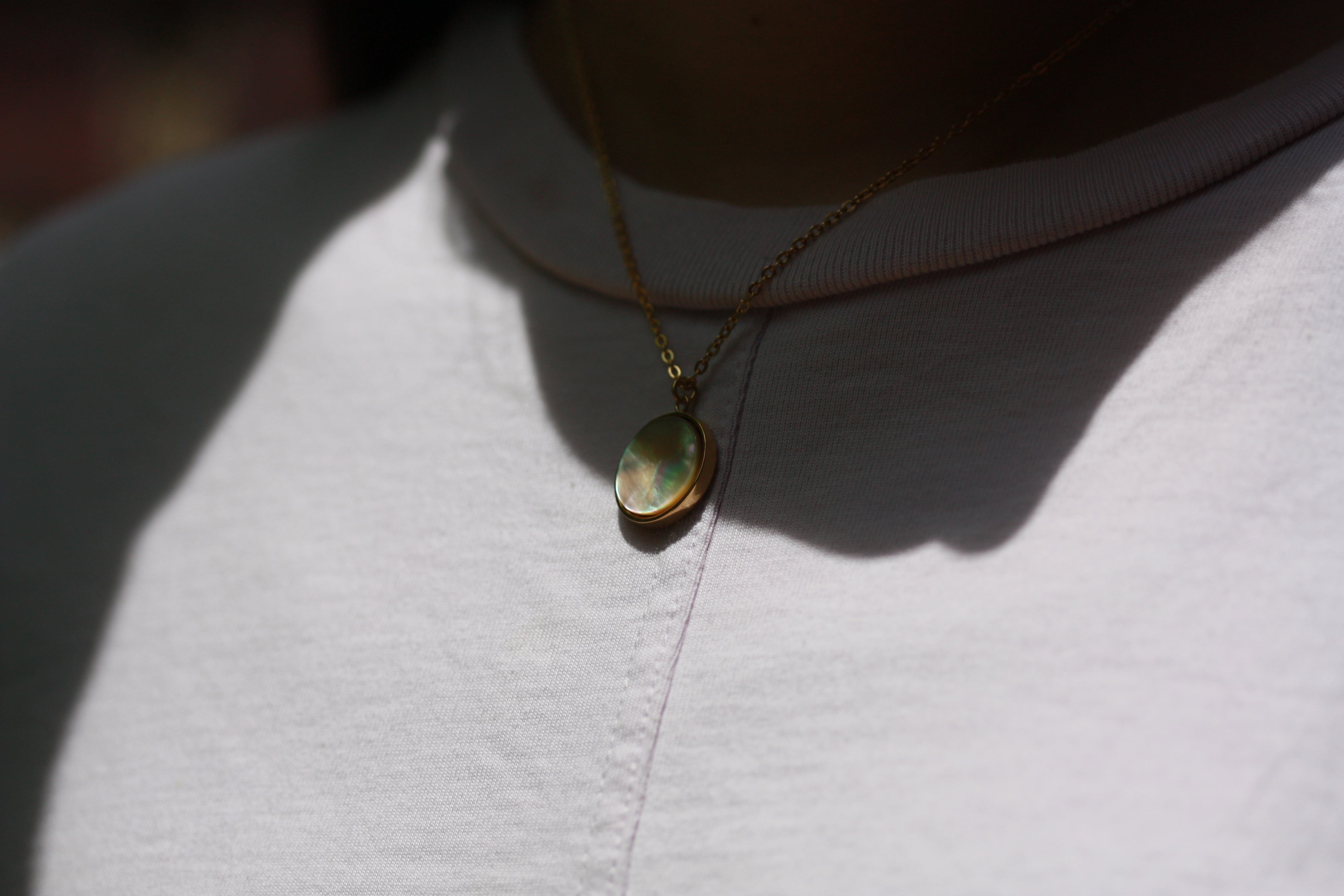 アワビの殻は光を受け、その時々で色合いが変わり、飽きのこない面白みが特徴です